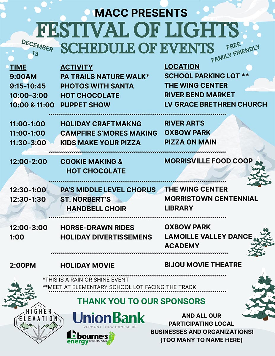 “Hometown for the Holidays” A classic, nostalgic small-town holiday celebration. Fun activities for all ages at multiple locations throughout the village of Morrisville, Vermont.